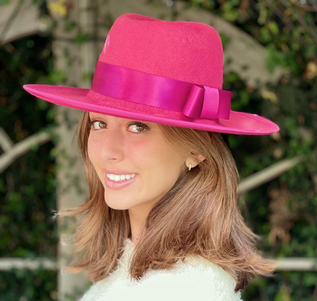 I made this pink wool felt hat by hand in my millinery studio in the Hollywood Hills.