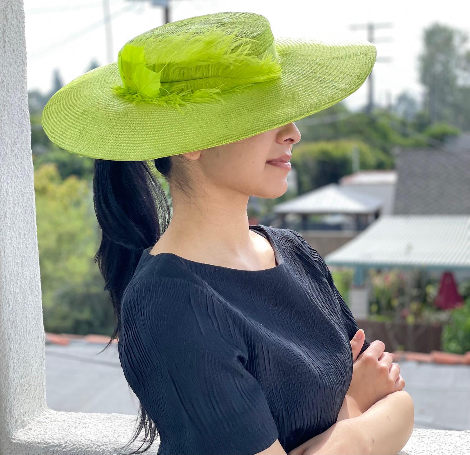 I made this one-of-a-kind chartreuse lime straw hat in my millinery studio in the Hollywood Hills.