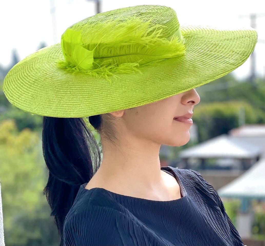 I made this one-of-a-kind chartreuse lime straw hat in my millinery studio in the Hollywood Hills.