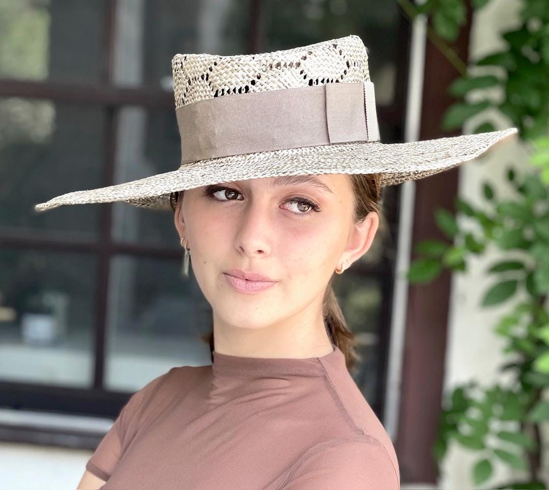 I made this one-of-a-kind honey color hat in my millinery studio in the Hollywood Hills. It's a cross between a fedora and boater style, one of my original designs. I chose a honeycomb weave and dyed it a warm honey color. Perfect for summer and autumn. Boaters are a favorite with Princess Kate this season. Perfect for a wedding guest, the horse races, Derby, polo or garden party.