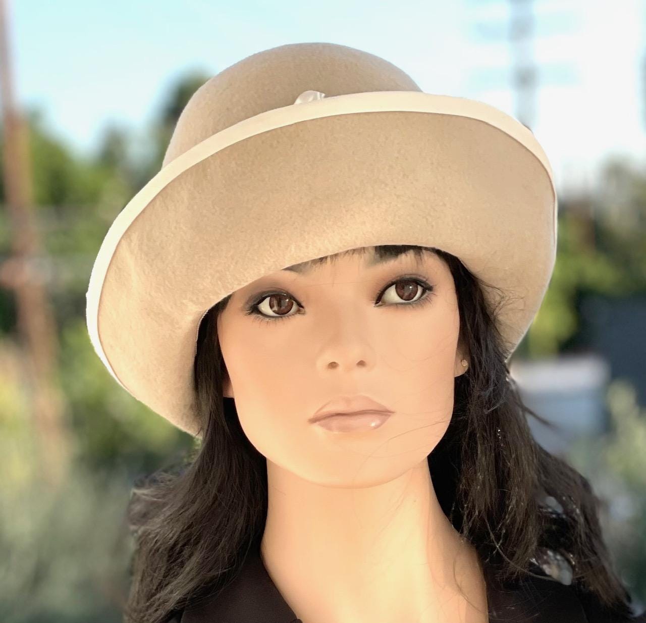 I made this vintage 1930s style winter cloche hat with the finest quality wool felt, which I steamed and blocked on an antique wooden hat black. Then I shaped, sized and trimmed it with an ivory sash and bow. Very feminine and sophisticated. Reminiscent of Downton Abbey and Miss Fisher. One-of-a-kind.