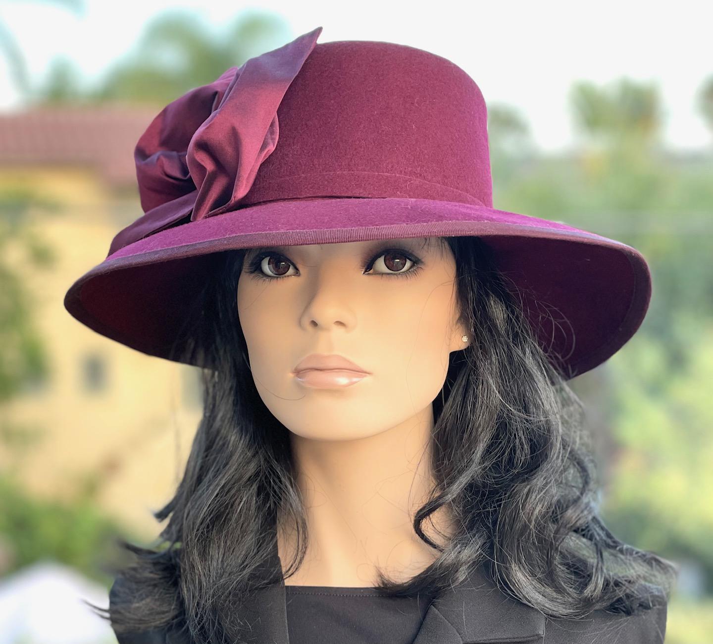 I hand made this rich burgundy wide brim hat with the highest quality 100% pure wool felt from the US.