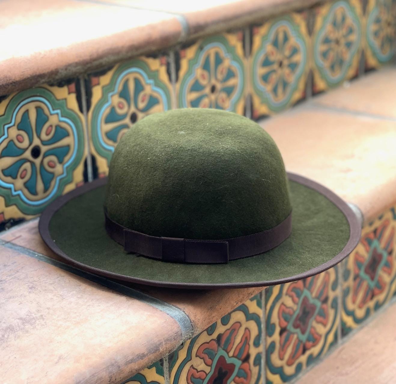 Diane Keaton Annie Hall hat. I made this dark olive or loden green fedora in my millinery studio in the Hollywood Hills using the highest quality 100% pure wool felt. The brim can be worn up or down and it has a lovely vintage vibe.