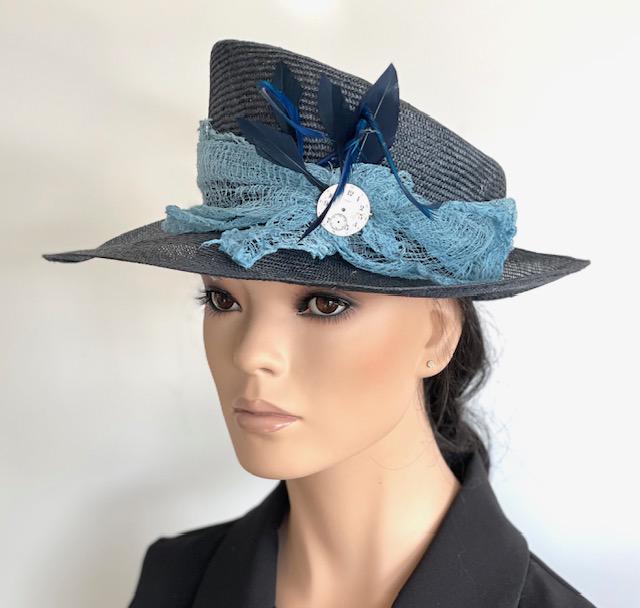 Handmade in my millinery studio in the Hollywood Hills. This navy blue hat is made with 100% pure wool felt. It takes me 3 days make every hat from start to finish. Soft and comfortable.